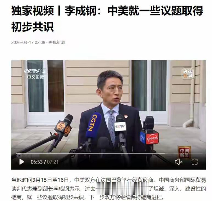 3月17日凌晨,跳跃两天的中好意思第六轮经贸盘问在巴黎实现。