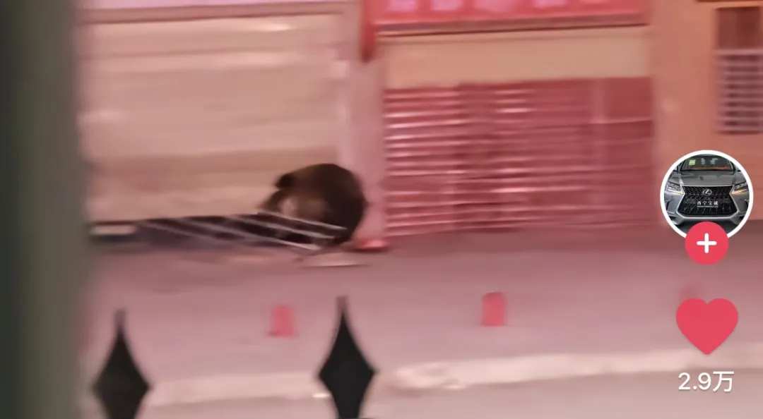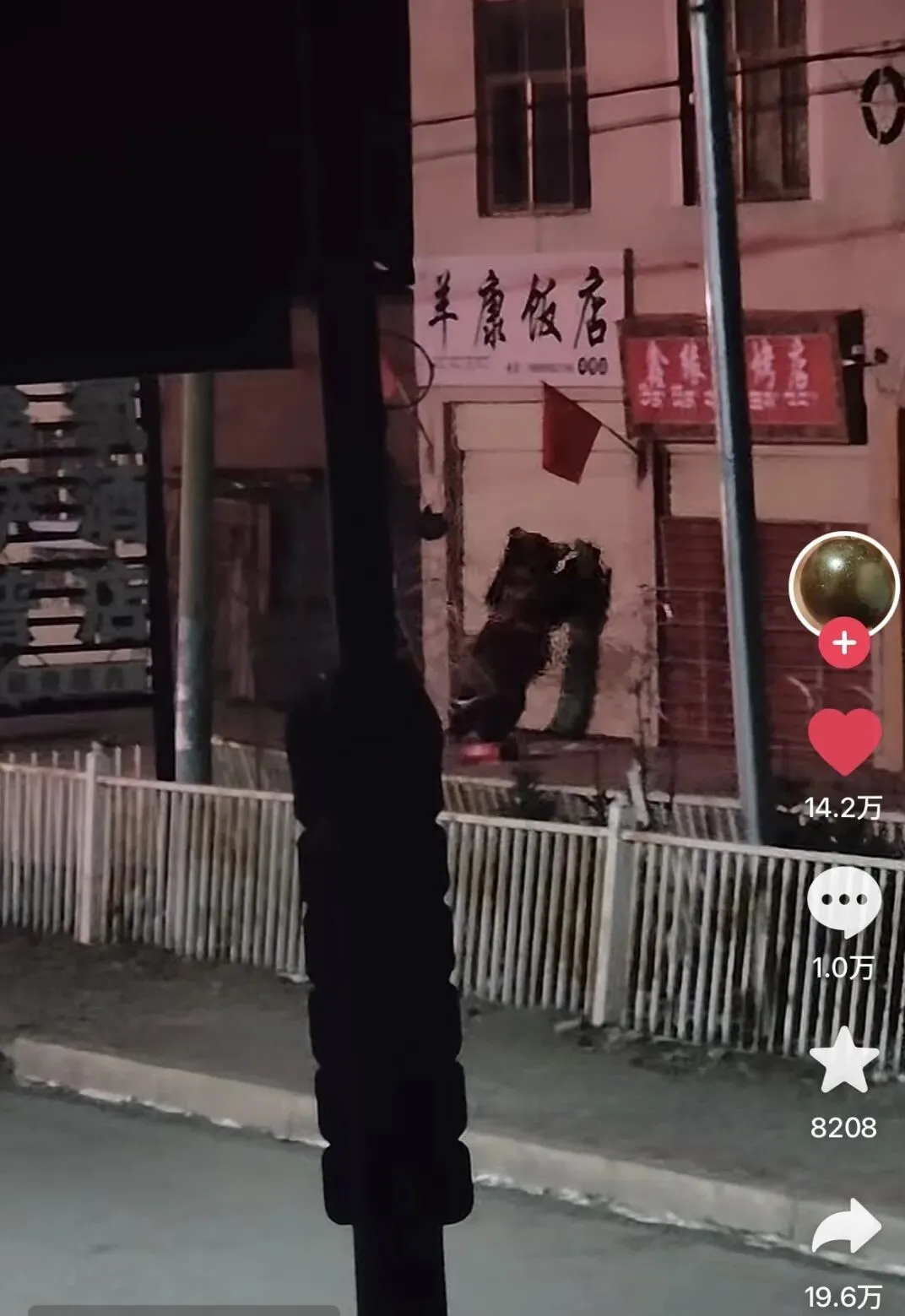 2月16日大除夕夜,在一临街饭店前,尽管店铺已关门并设有铁丝网围挡,一头和成年东说念主身高差未几的藏马熊仍旧用力拍打店铺的卷帘门。