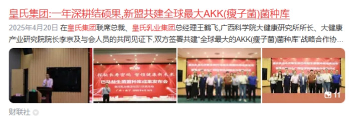 第三,公司通过与四川厌氧生物辘集发布巴马益生菌菌种库首要科研效果,切入了AKK菌中枢赛谈。并与广西科学院签署政策左券共建全球范围最大的AKK菌(嗜黏卵白阿克曼菌,俗称“瘦子菌”,以下简称AKK菌)菌种库。将充分受益于AKK菌减肥赛谈的爆发带来的功绩擢升。